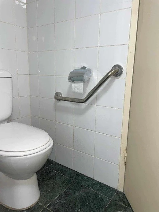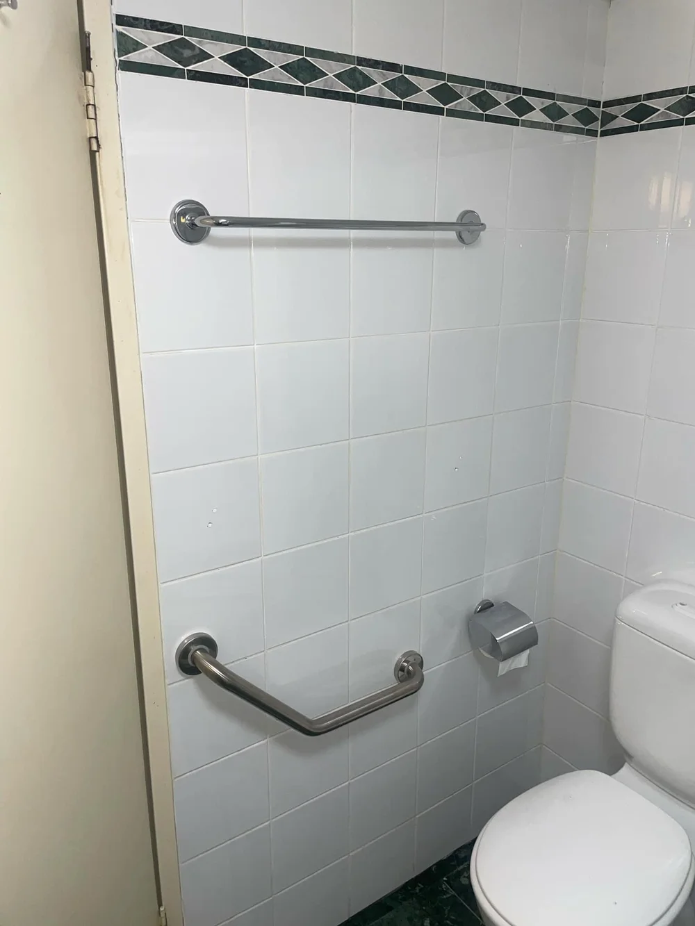 Professionally installed by our licensed internal plumber, this rail is a safe and compliant choice for clients requiring extra bathroom support.